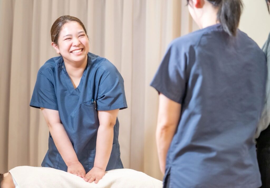 弊社では入社後、患者様とのやり取りを通し、施術や接客などさまざまなことを段階的に学んでいける環境が整っています。